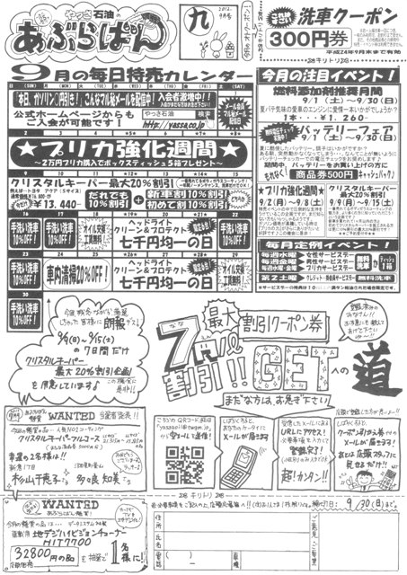 今月号はなんといっても紙面右上の『洗車300円クーポン』がお得ではないでしょうか。