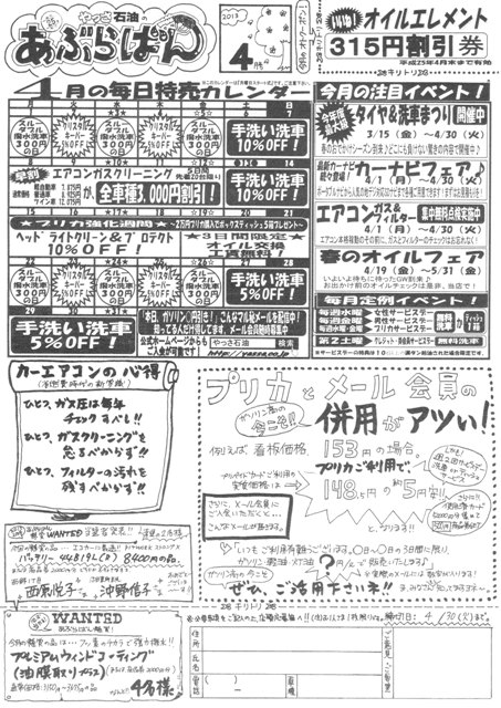 広報新聞『あぶらばん2013年4月号』が発行されましたのでご報告申し上げます。